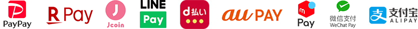 PayPay、RPay(楽天ペイ)、J-Coin Pay、LINE Pay、d払い、auPAY、メルペイ、We Chat Pay(ウィチャットペイ)、ALIPAY(アリペイ)、の各種QRコード決済サービスに対応しています。